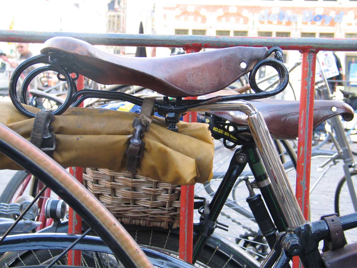 This makes a nice bike, with a very specific detail: the oiler at the end of the down tube. I've never seen it on another model. Look at the beautiful restored saddle. I am always happy if a safety still has its fenders, but on this bike they look like replicas: no rust pitting visible and not correctly mounted at the front fork.